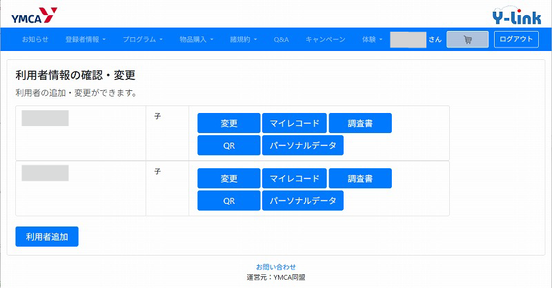 複数の方(兄弟姉妹)の登録をされる方は「利用者追加」よりご家族をご登録ください。 |