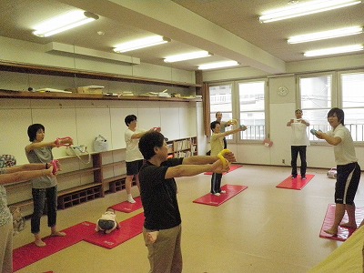 さて遅くなりましたが、7月のYMCAホームヘルパーの事務所スタッフ全体会の報告です。今回は「スタッフのセルフケア・腰痛予防とリフレッシュストレッチ」という内容で、神戸YMCAウエルネス三宮のフィットネス部門のスタッフから直接指導してもらいました。