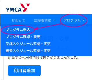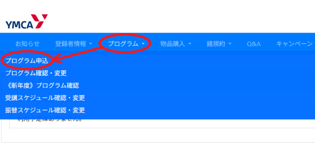 | 1.プログラムから「プログラム申込」をクリック。 |