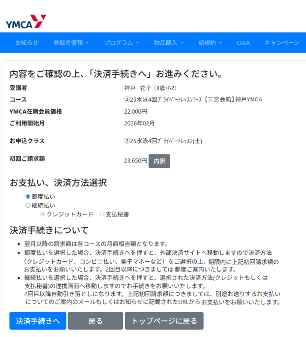 | ※注意ポイント! ご利用拠点は必ず「神戸YMCA」を選んでください |