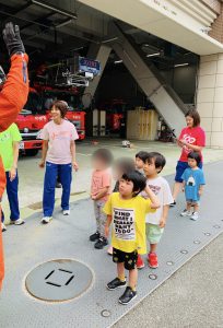 いつも送迎バスルートで通る消防署なので、バスで消防署の前を通るたびに「また消防署行こうね!」とみんなで話していました。